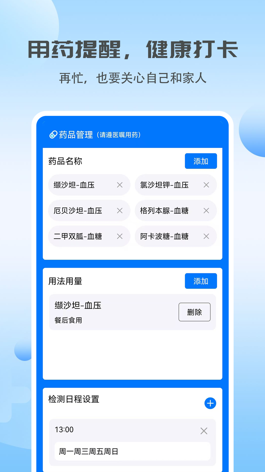 为了防止大伙儿因为忙碌忘记测数值或者吃药,软件支持设置闹钟式提醒,像个小助手一样按时监督你管理身体。
