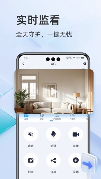 提供清晰流畅的实时视频直播,支持在手机端随时查看监控画面。