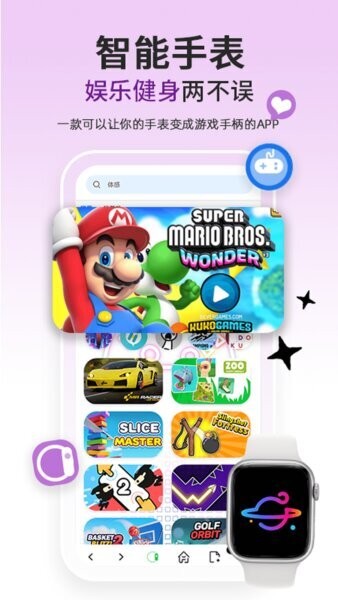体感浏览器官方正版不是那种光会加载网页的普通浏览器,它把“看”和“动”真正连在了一起,你不用一直戳屏幕,抬个手、转个腕、点一下手表,就能翻页、返回、放大网页,特别适合躺着刷资讯、健身时查内容,或者单手拿手机不方便操作的时候,它还能把手表变成遥控器,手机放桌上,用手表就能控制浏览,省得来回拿放,首页聚合了热门网页、小游戏和娱乐卡片,找东西不绕路,点开就能玩或看,整个设计不搞复杂设置,新手上手快,老用户还能自定义手势灵敏度,让操作更贴合自己的习惯。