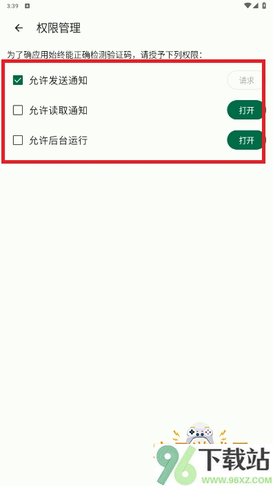 3、根据页面要求开启通知使用权,同时授权短信读取权限以便正常识别内容。