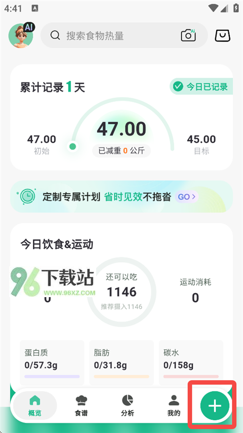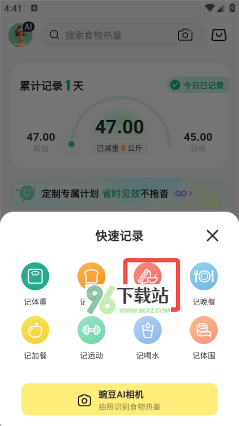 配备AI减重助手解答疑问提供建议,支持拍照识别食物热量并分析营养成分