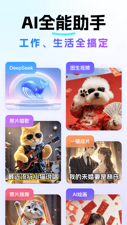 包括图文转视频、智能剪辑、照片跳舞及唱歌等,让用户轻松将静态内容转化为生动有趣的多媒体作品。