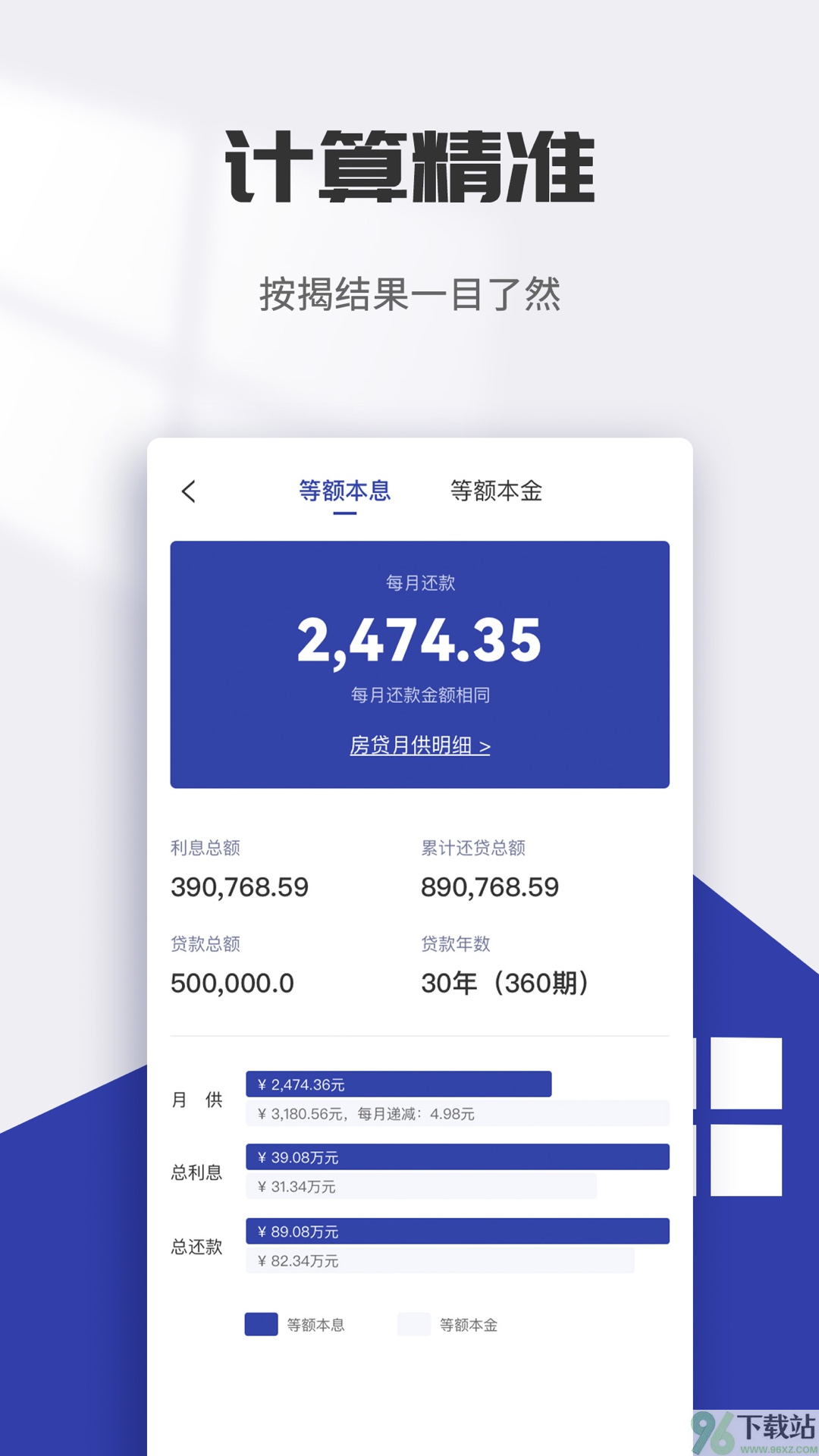 银行利息计算器App是一款专打房贷计算的手机工具,买房时最头疼的月供、总利息、契税、房子估值,全都能几秒算清楚,只需填几项基本数据,就能出详细结果,利率变动也随时看得到,让你买房不迷糊,决策更稳当。