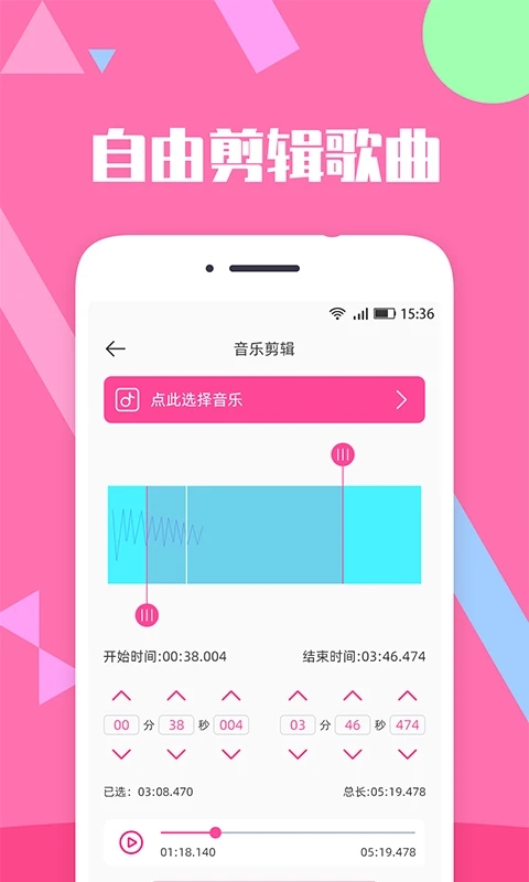 本地音乐文件拖入后可视化选取波形,截取精华片段保存为铃声或独立音频。