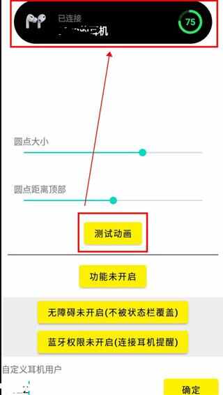 3、按下“测试动画”的选项,您将能在手机屏幕的顶端区域看到一个小动画效果,直观地看到设置的效果,了解您更改的是否到位。