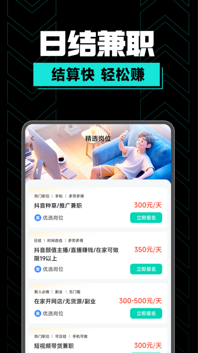 主推日结兼职模式,任务完成后薪资快速发放,彻底解决传统兼职拖欠工资的痛点,让赚钱更轻松。