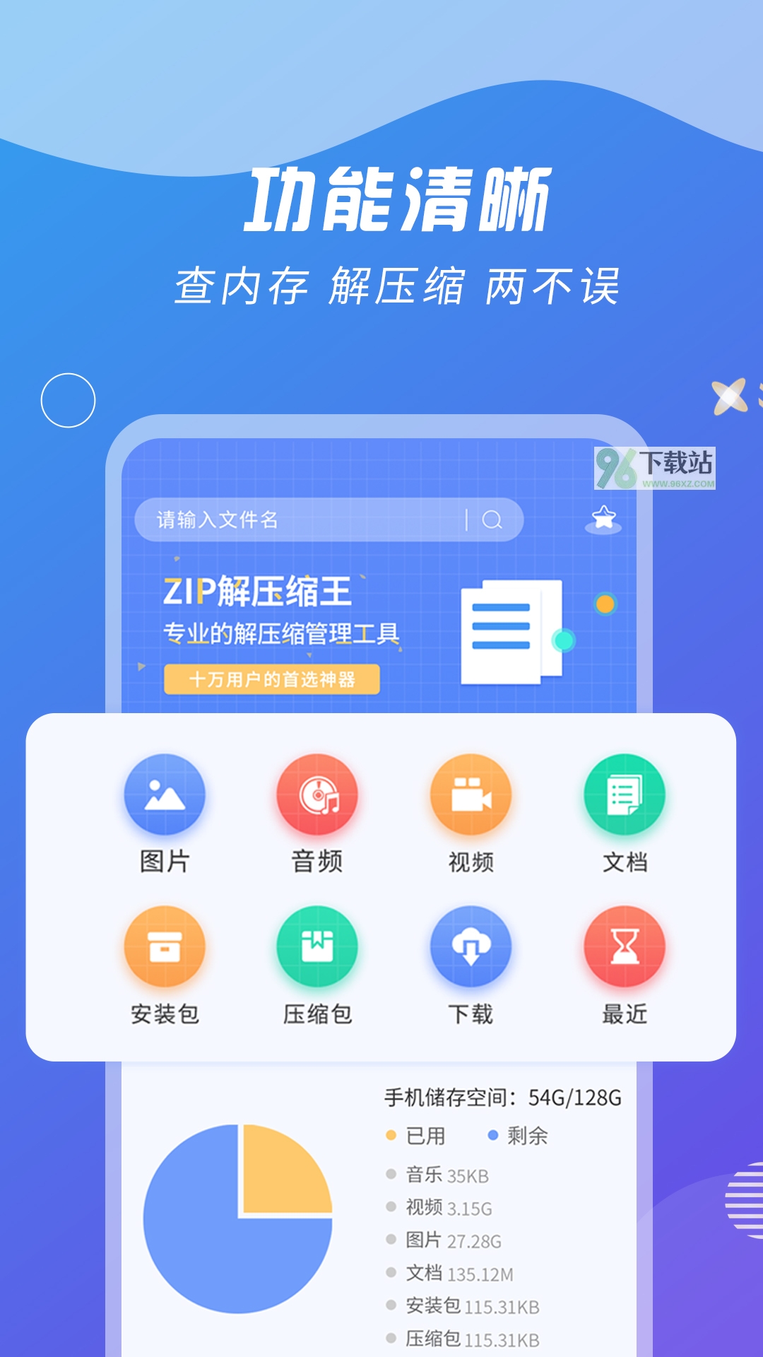 Zip解压缩王安卓版,一款专门处理压缩包的小工具,能解压也能压缩,带密码的也能处理,顺便兼任文件管理,手机上找文件、挪位置、改名字都能干,不用在系统文件管理器和压缩软件之间来回跳。