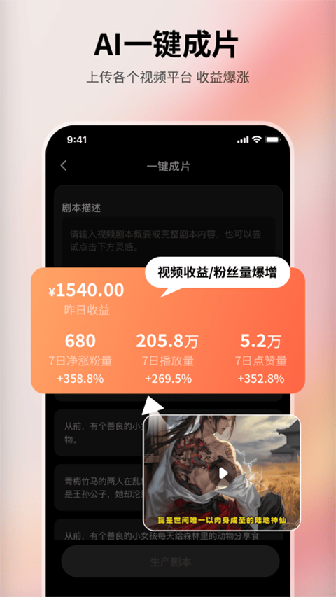 •小说推文视频:把小说内容快速做成视频,支持分镜编辑,适合做自媒体内容。