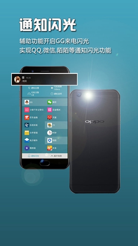 2、消息通知扩展,支持微信、QQ、陌陌等社交应用的新消息闪光提示,重要信息不易遗漏。