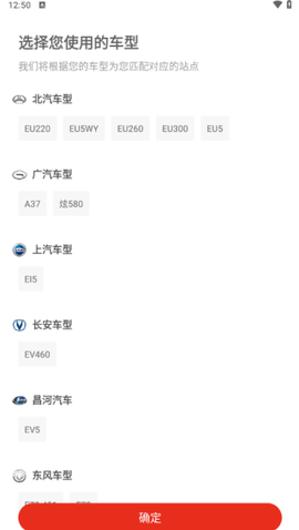3、在车型选择页面中找到你自己开的那款车,确认无误后点确定,系统会自动适配对应电池规格。