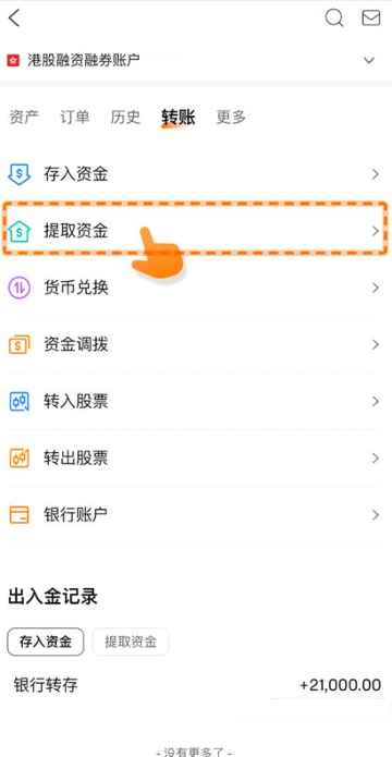 先点进“账户”页面,找到“转账”选项,再选“提取资金”开始操作。