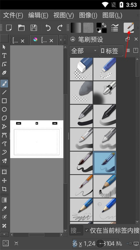 右侧的笔刷面板列出了各种预设,点一下就能换。想微调笔刷大小或硬度?双指缩放或长按画布调出快捷菜单就行。更精细的参数可以在“笔刷编辑器”里调整。