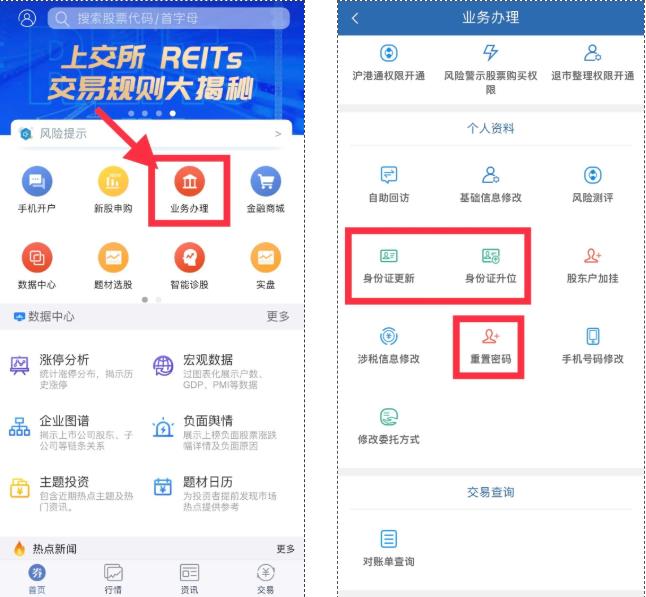 4、【业务办理】 像开通创业板权限、修改手机号、重置密码、查交割单这些事,现在全挪到线上了。四大类十六项常见业务,基本填个信息、拍个照就能办完,不用请假跑网点。