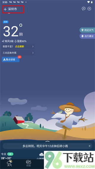 2、选择“添加城市”,输入你想关注的地方。