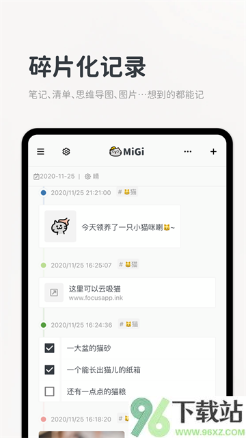 Migi笔记app是一款以时间线为核心的生活记录工具,把日常的点滴——无论是随手记下的灵感、读完一本书的感想,还是琐碎的待办事项,都按日期自然排列。它不只是个记事本,更像一个陪你过日子的伙伴,既能在日历上标记重要节点,又能随时写写画画,让记录这件事变得轻松又有趣。