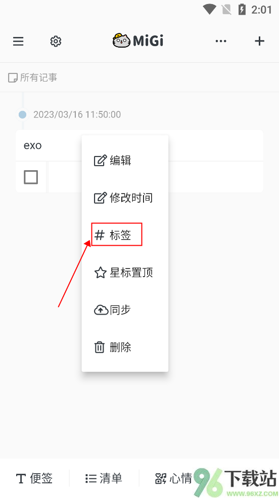 先在时间轴上长按你想整理的那条清单,弹出菜单后选“标签”;