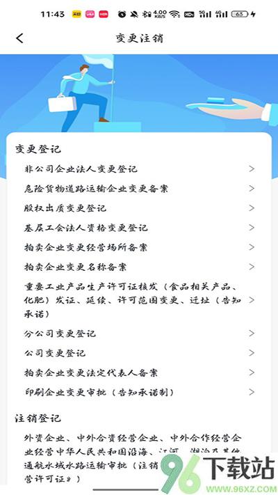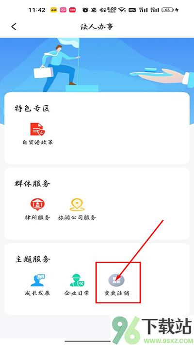 4、在企业办事的选项里,找到“变更注销”这个模块,点进去;