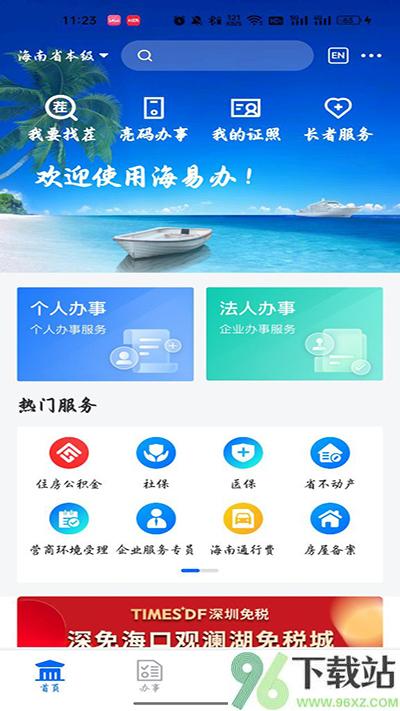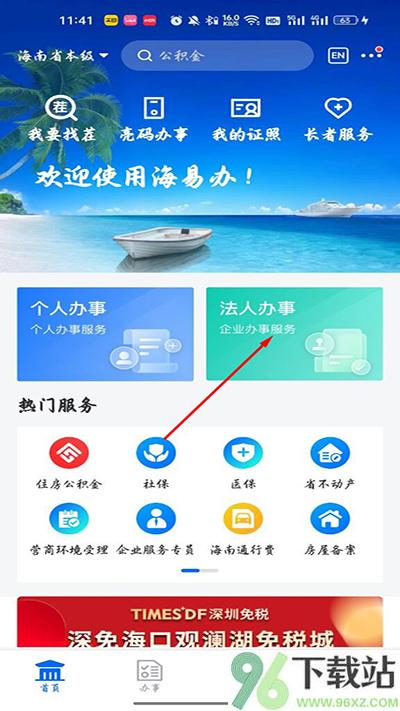 1、先打开海易办App,首页找到“法人服务”这个入口点进去;