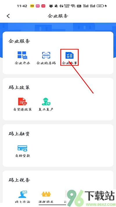 3、接着页面会跳转到企业相关功能,这时候选“企业办事”继续操作;