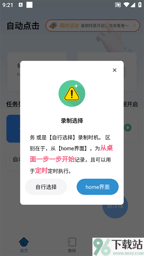 3、接下来要选录制方式,有“自行选择”和“Home界面”两种,这里我们选前者,更自由一些;