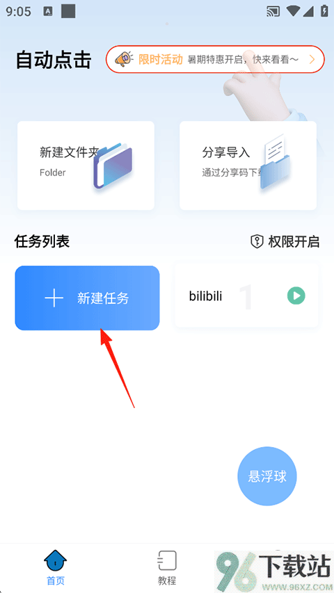 1、启动自动按键点击App,进入首页后点“新建任务”开始设置;