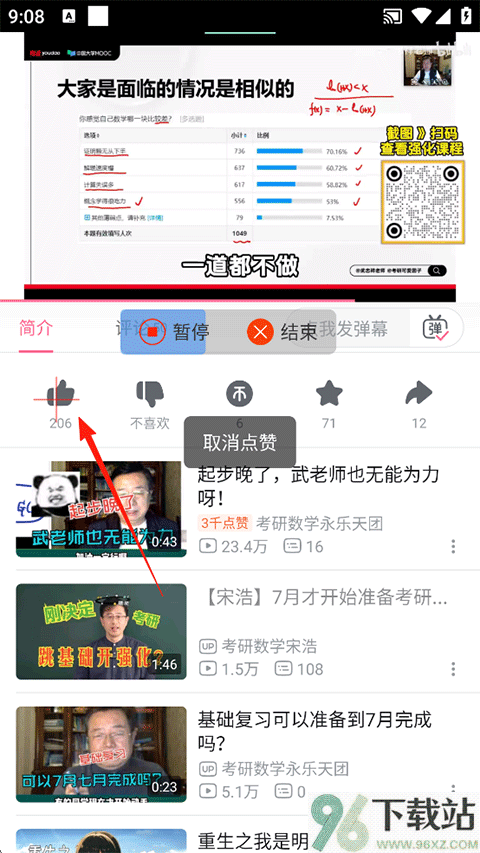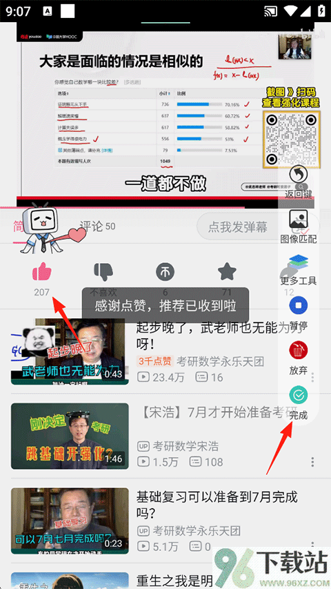 5、在视频下方连续点几次“点赞”图标,觉得够了就点悬浮球上的“完成”;