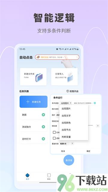 自动按键点击是一款不用Root就能用的自动化小帮手,它能代替你完成那些重复又费手指的操作。不管是抢限量商品、挂机刷日常,还是定时收能量,只要设定好规则,它就能在后台默默干活,不占系统权限,也不挑手机型号,用起来既省心又高效。