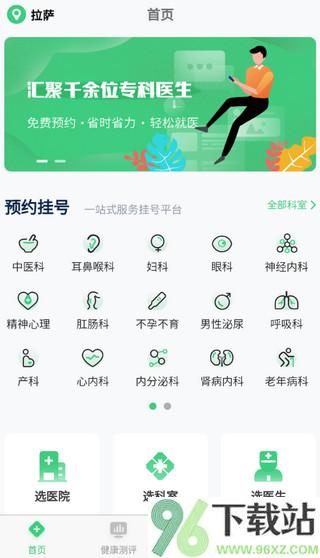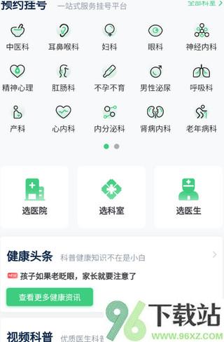 2、首页就能看到“预约挂号”入口,点进去先挑医院,再选科室,最后定医生。