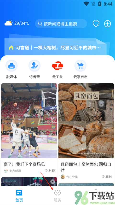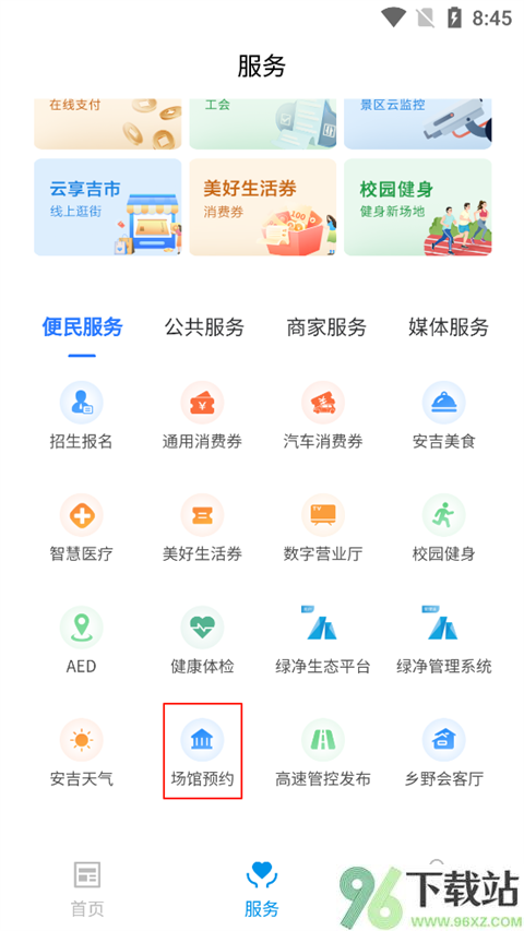 1、先打开爱安吉App,首页往下滑或者点底部菜单,找到“服务”区域;