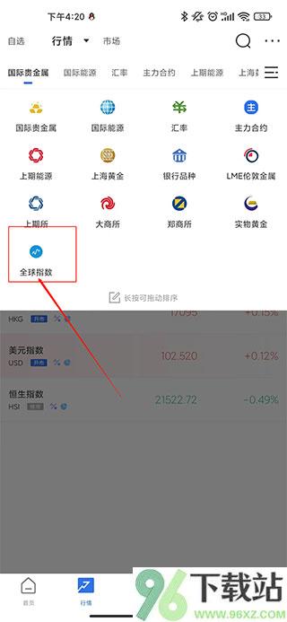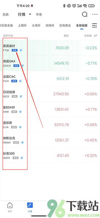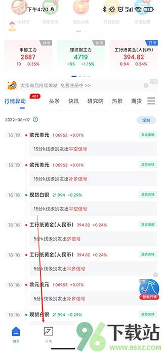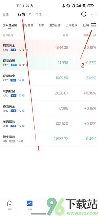 1、打开App,底部导航栏点“行情”进入主页面。