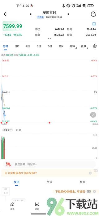 5、点进去之后,就能看到实时走势图、最新报价和相关技术指标,数据刷新很及时,基本和国际市场同步。