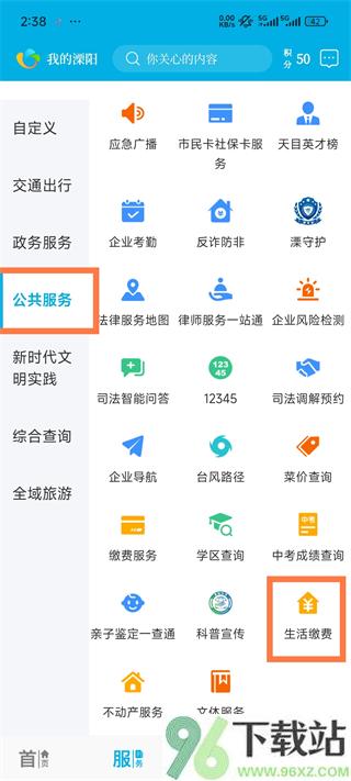 1、打开App,首页或服务页面里找到“生活缴费”入口。