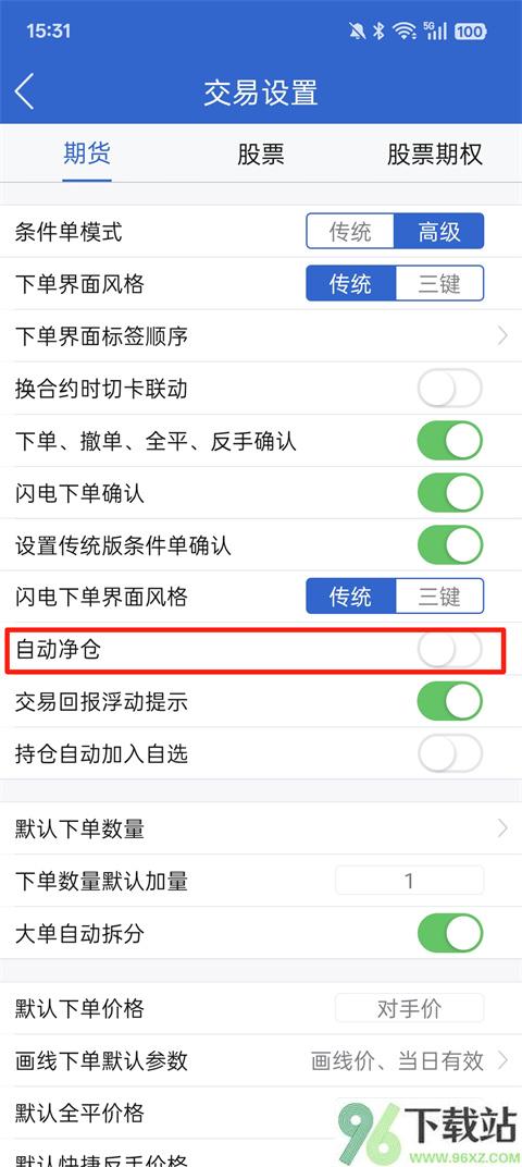 2、在个人页面找到【交易设置】入口,进去之后把【自动净仓】开关打开就行;