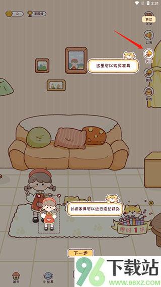 1、点开“主题”就能逛家具商店,买回来的家具长按就能拖来拖去,随心调整位置,打造理想小窝;