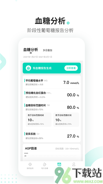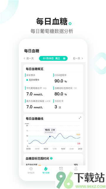 3、当血糖超出设定范围,系统会立刻推送提醒,并附带多维度图表帮你理清波动规律。
