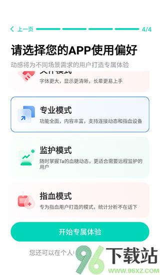 3、接下来挑选适合自己的使用模式:关怀模式界面简洁,适合老年人;专业模式功能更全;监护模式方便家人远程关注;指血模式则为还在用传统血糖仪的用户提供过渡方案。