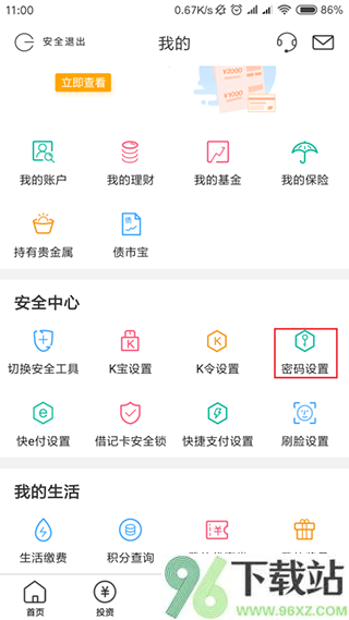 1、先装好官方版本的App并登录账号,进入底部“我的”页面后,找到“安全中心”,点开里面的“密码设置”选项;