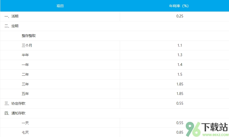 人民币个人存款挂牌利率表