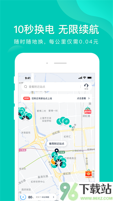 1、打开地图就能看到周边的换电柜和租车点,位置、状态一目了然,不用瞎转悠。
