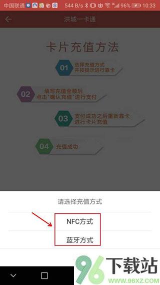 3、根据提示选择充值方式,比如用NFC贴卡,或者连蓝牙设备扫码。