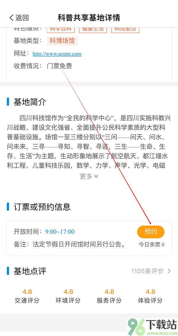 3、进入场馆详情页后,往下滑一点,会看到一个醒目的“预约”按钮,点一下;