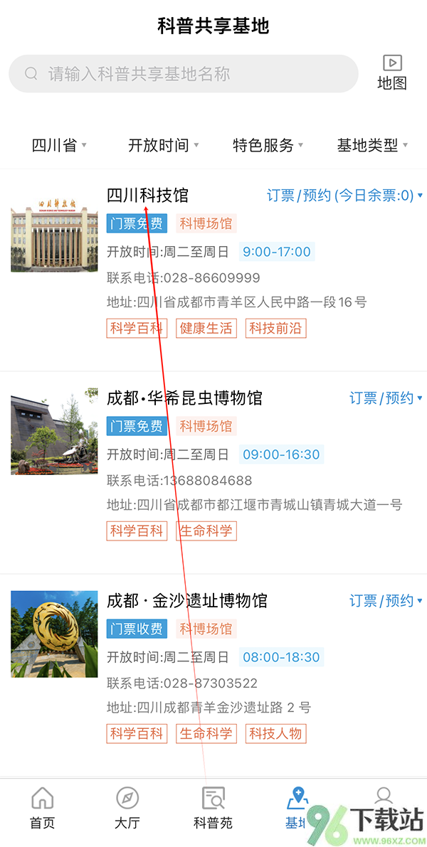 2、页面加载后,一眼就能看到“四川科技馆”的选项,直接点击它;