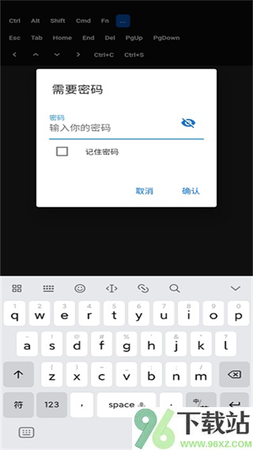 3、点一下ID框右边的连接箭头,接着输入对方设置的访问密码——这个密码可以在电脑端的RustDesk界面里看到。