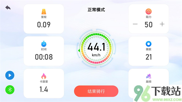 2、界面设计挺贴心,数字仪表盘配上悬浮球功能,一边看剧一边练完全不冲突;要是视频通话时开着,还能边运动边和朋友互动。