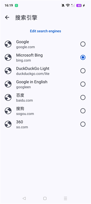 5、进设置后,第一件事很多人会改搜索引擎,比如换成DuckDuckGo、Searx这类注重隐私的,不用非得用Google。