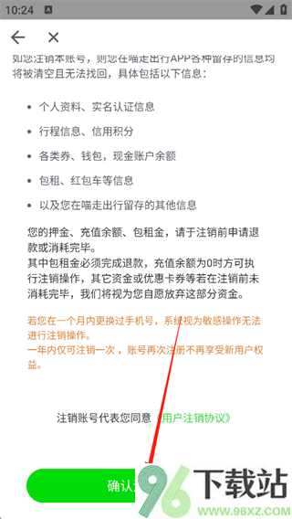 最后确认一下信息,点击“确认注销即可”完成整个流程。