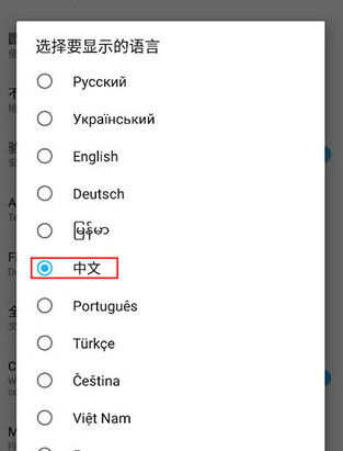 5、在语言列表里选中“中文”,界面就会立刻切换成中文显示了
