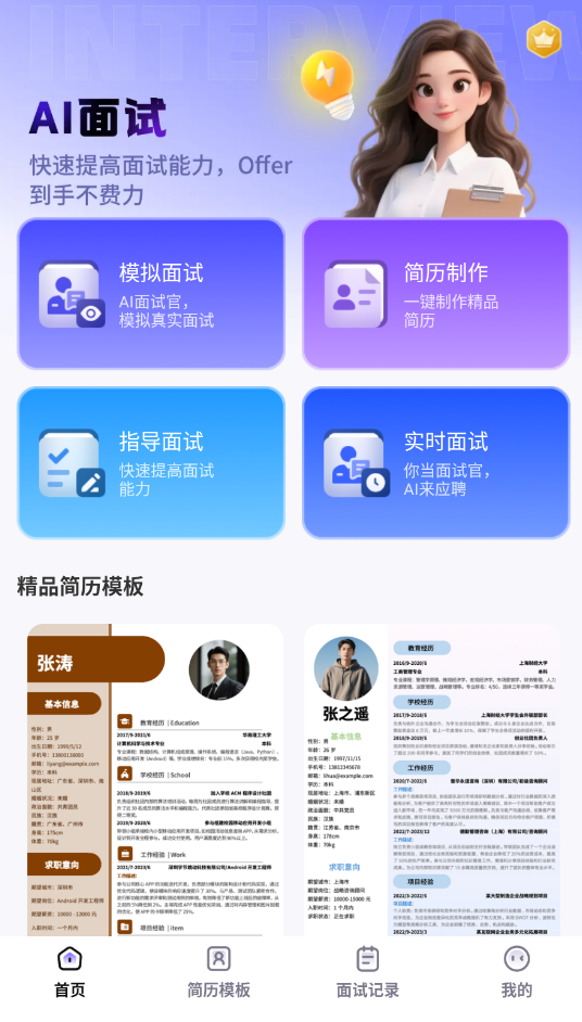AI面试帮这款软件来自湖北禹链科技有限公司,主打面试准备场景。用户能在这里进行模拟面试练习,也能制作和优化简历,还能获得面试技巧指导。模拟面试环节会根据简历内容和目标岗位来出题,包括技术题、情景题等类型,尽量还原真实面试的感觉。面试结束后系统会给出评估报告,帮助用户了解自己的表现和改进方向。