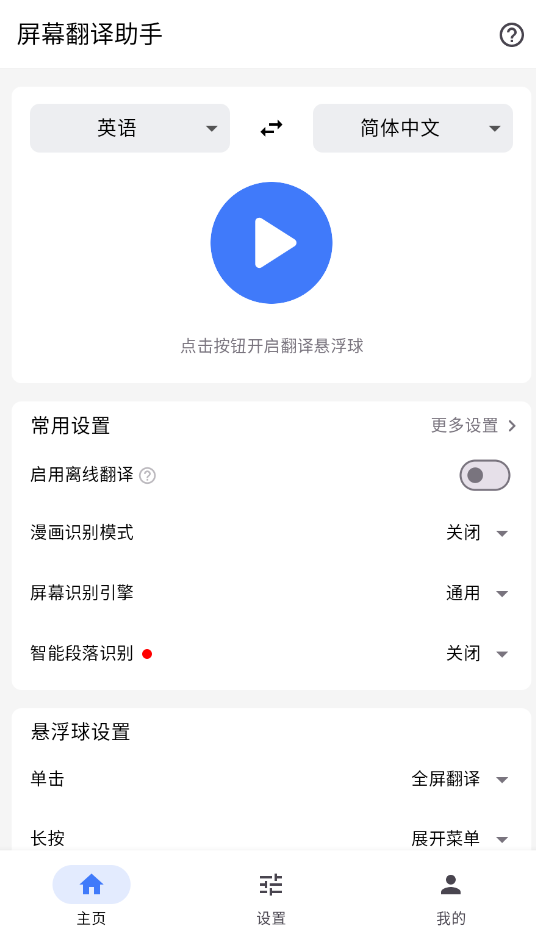 1、装好应用后打开首页,点一下那个悬浮小球,翻译功能就激活了。