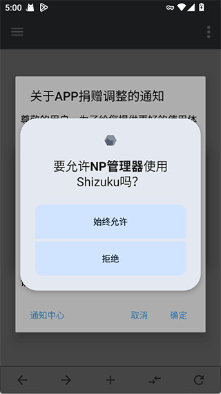 1、首先得装好Shizuku并完成激活,接着启动NP管理器,Shizuku会把系统级权限授权给它,这样NP就能执行原本受限的操作了。